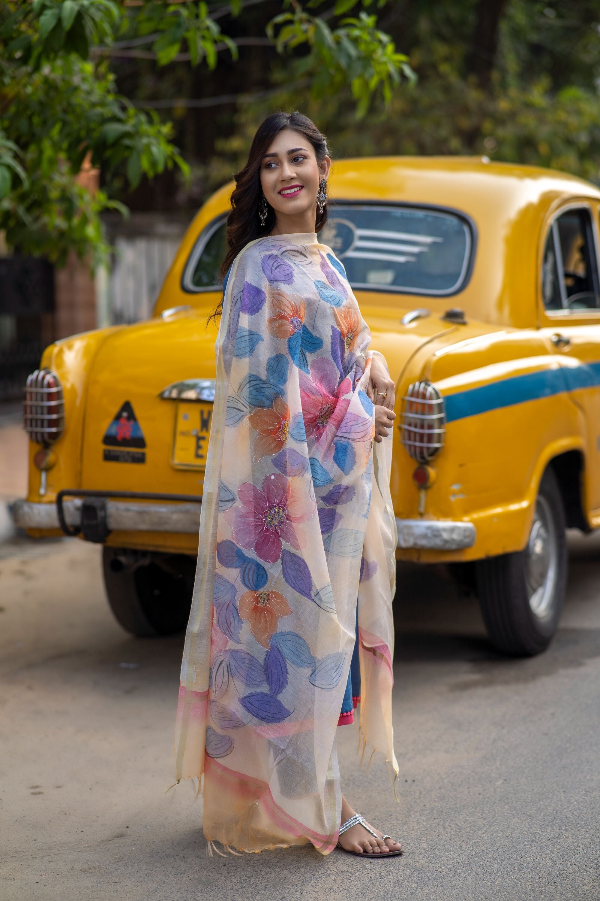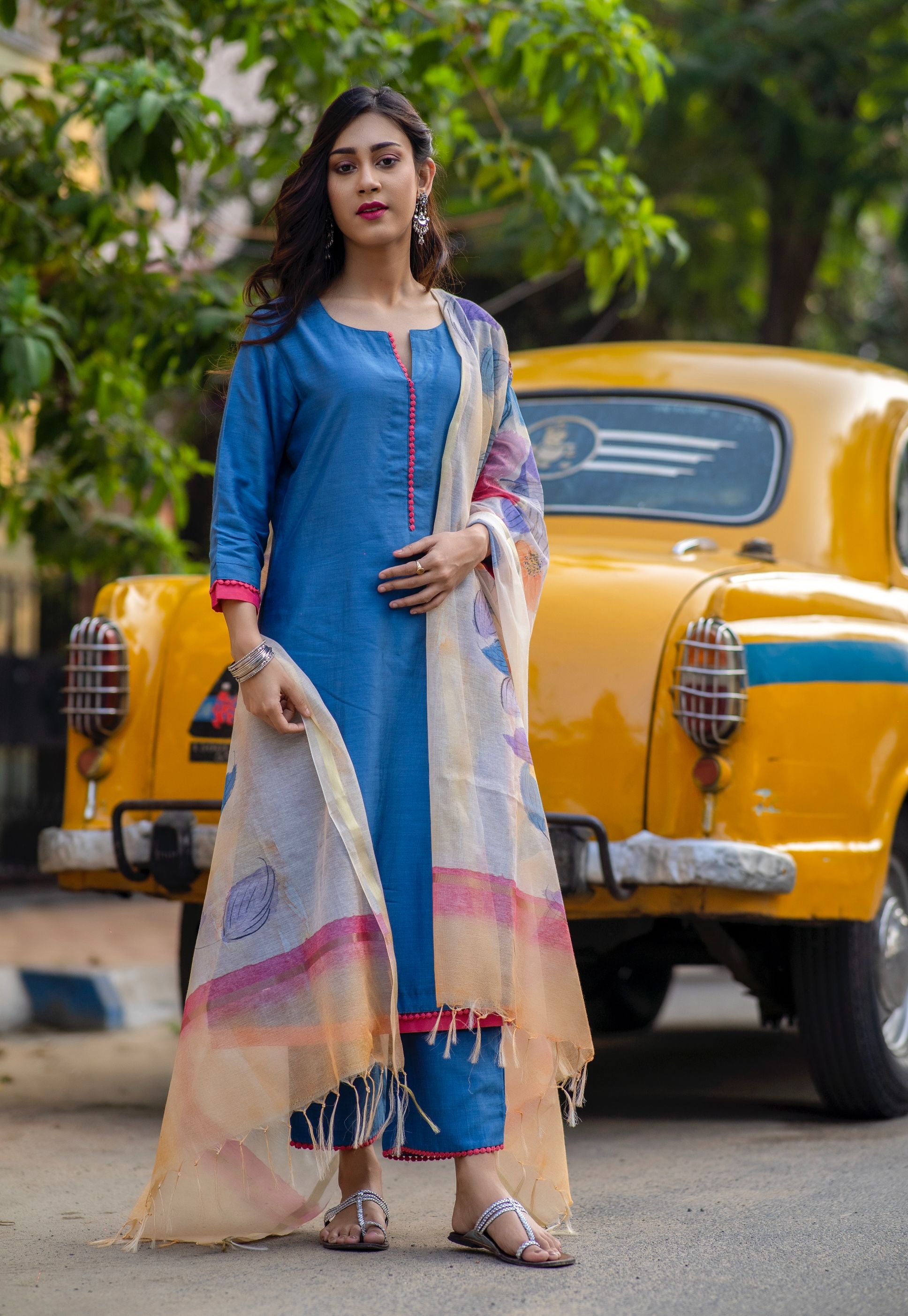 Lapis blue set with handpainted dupatta