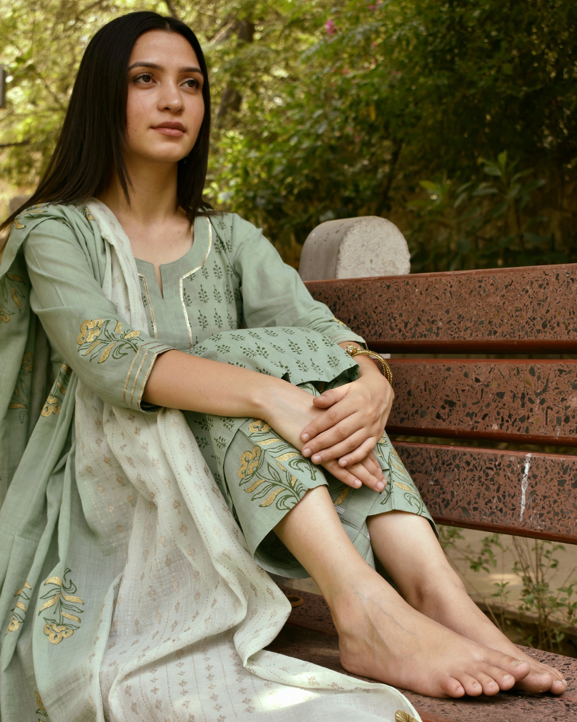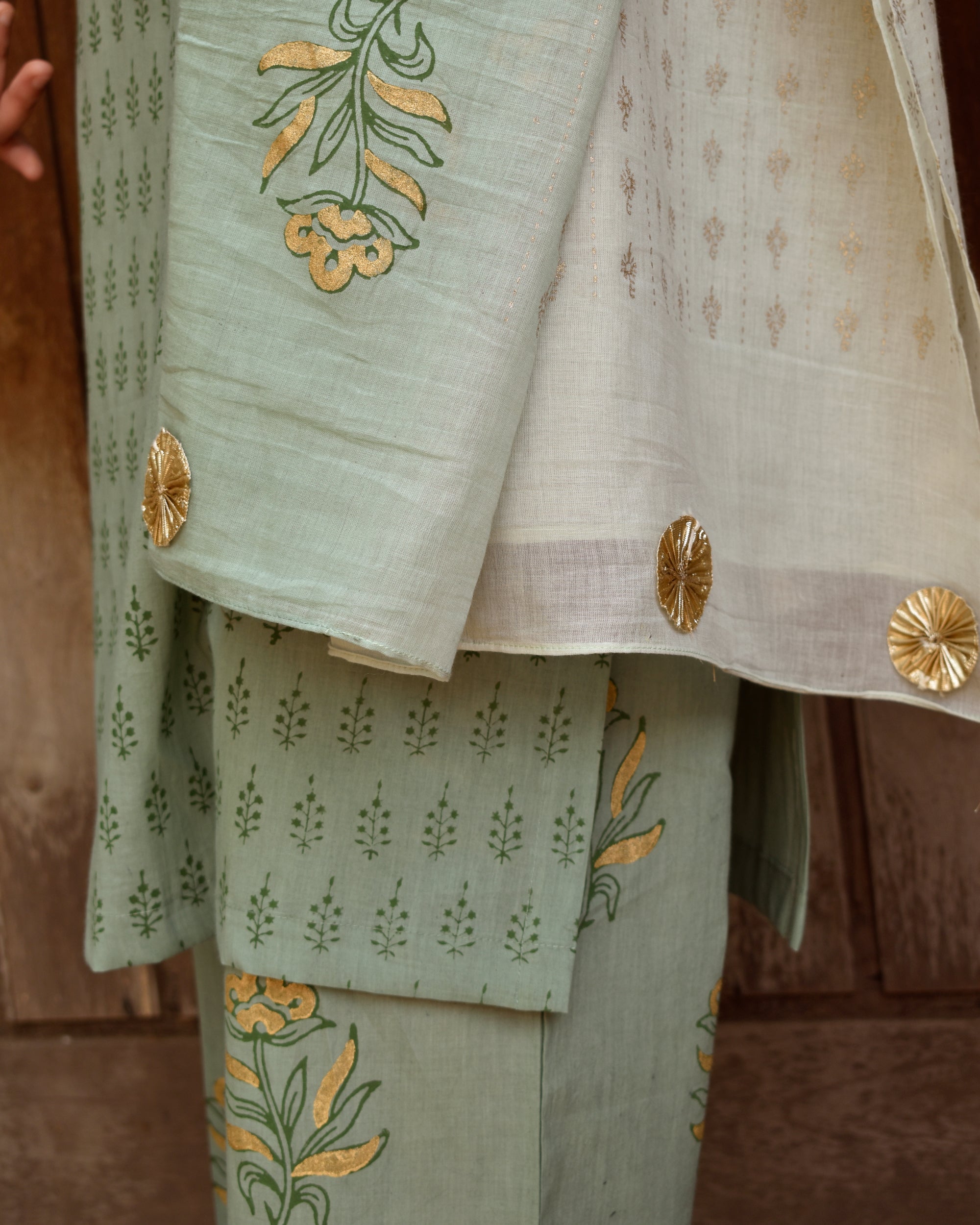 Mint green and sage block printed cotton set