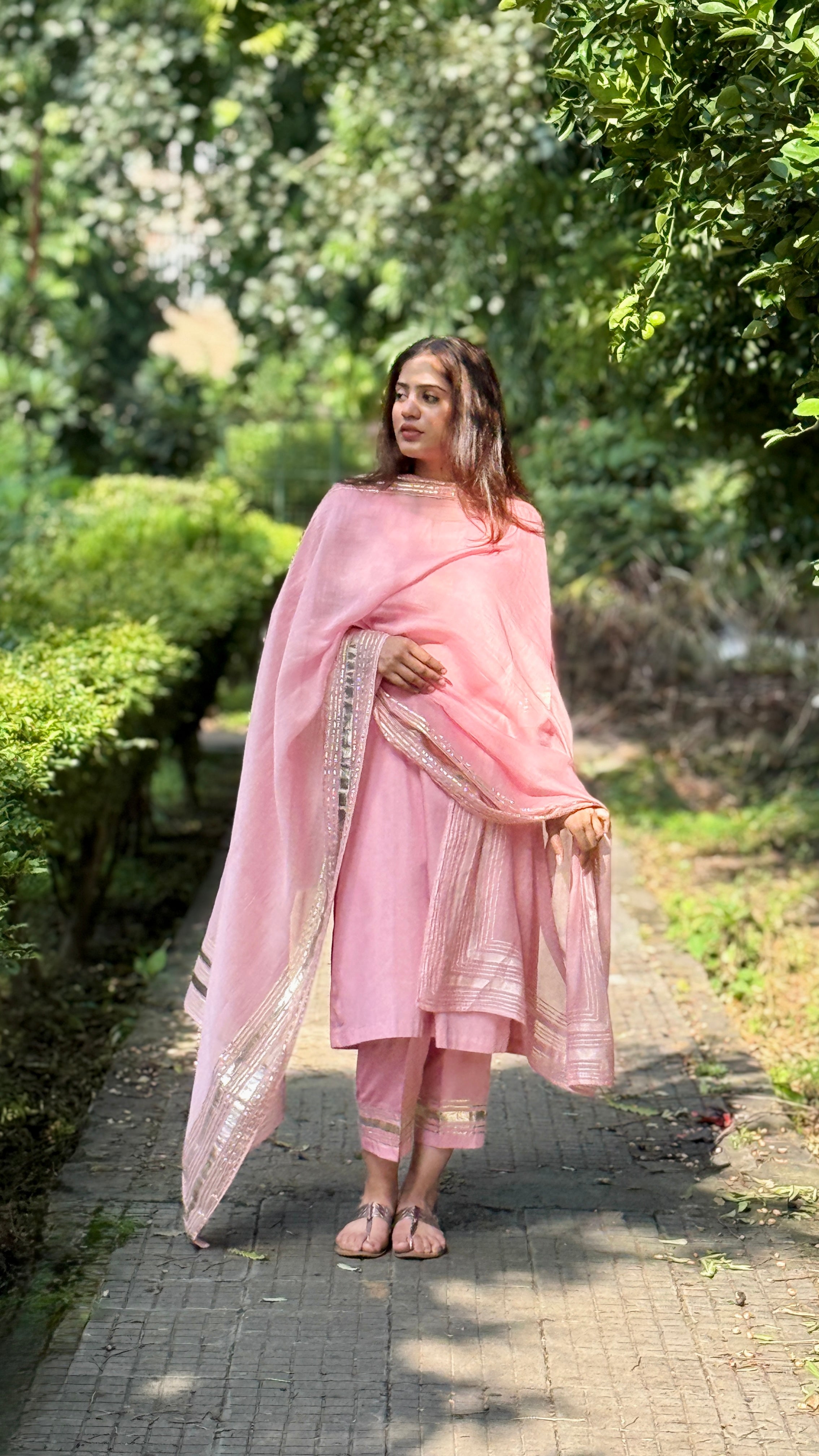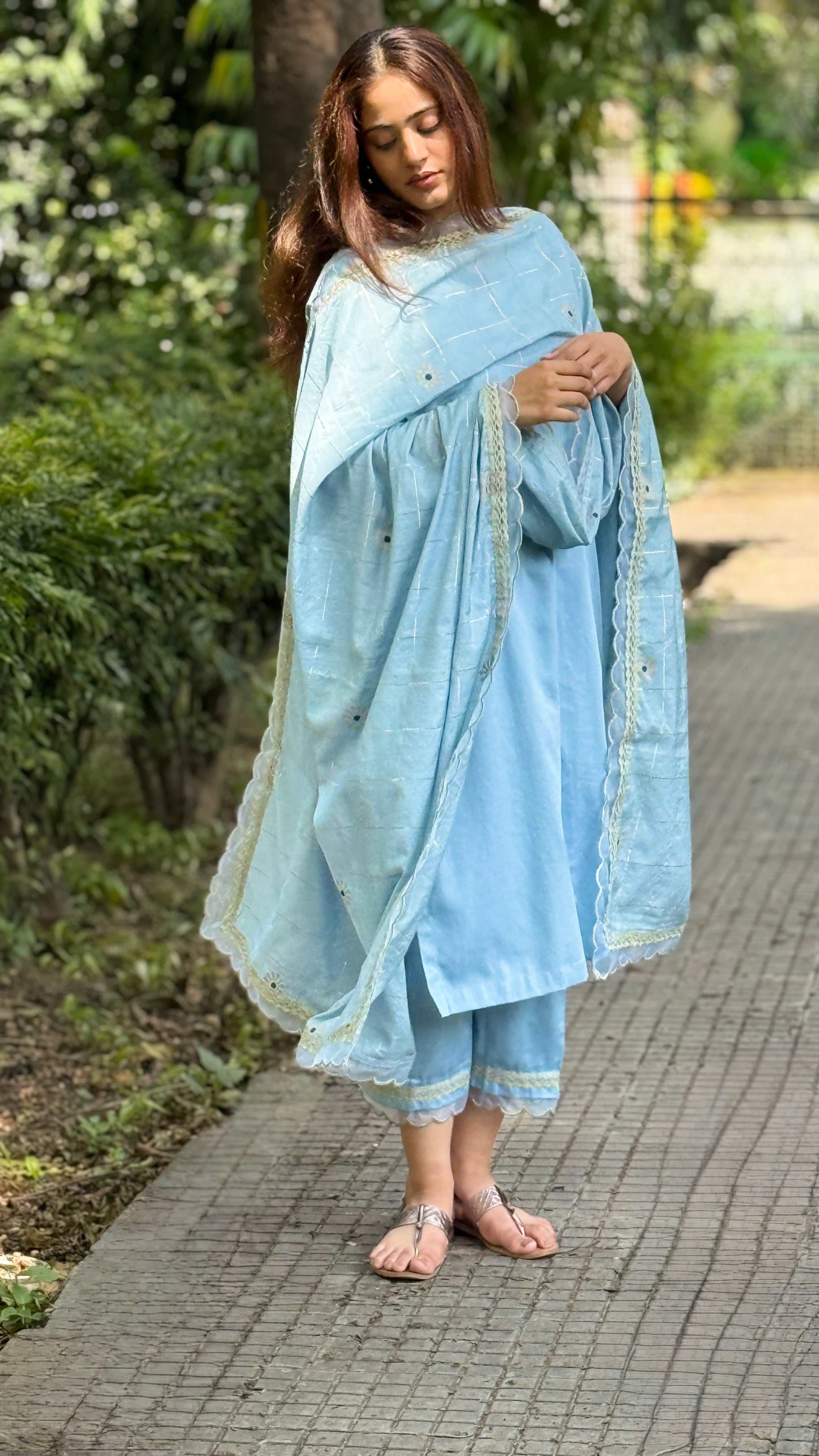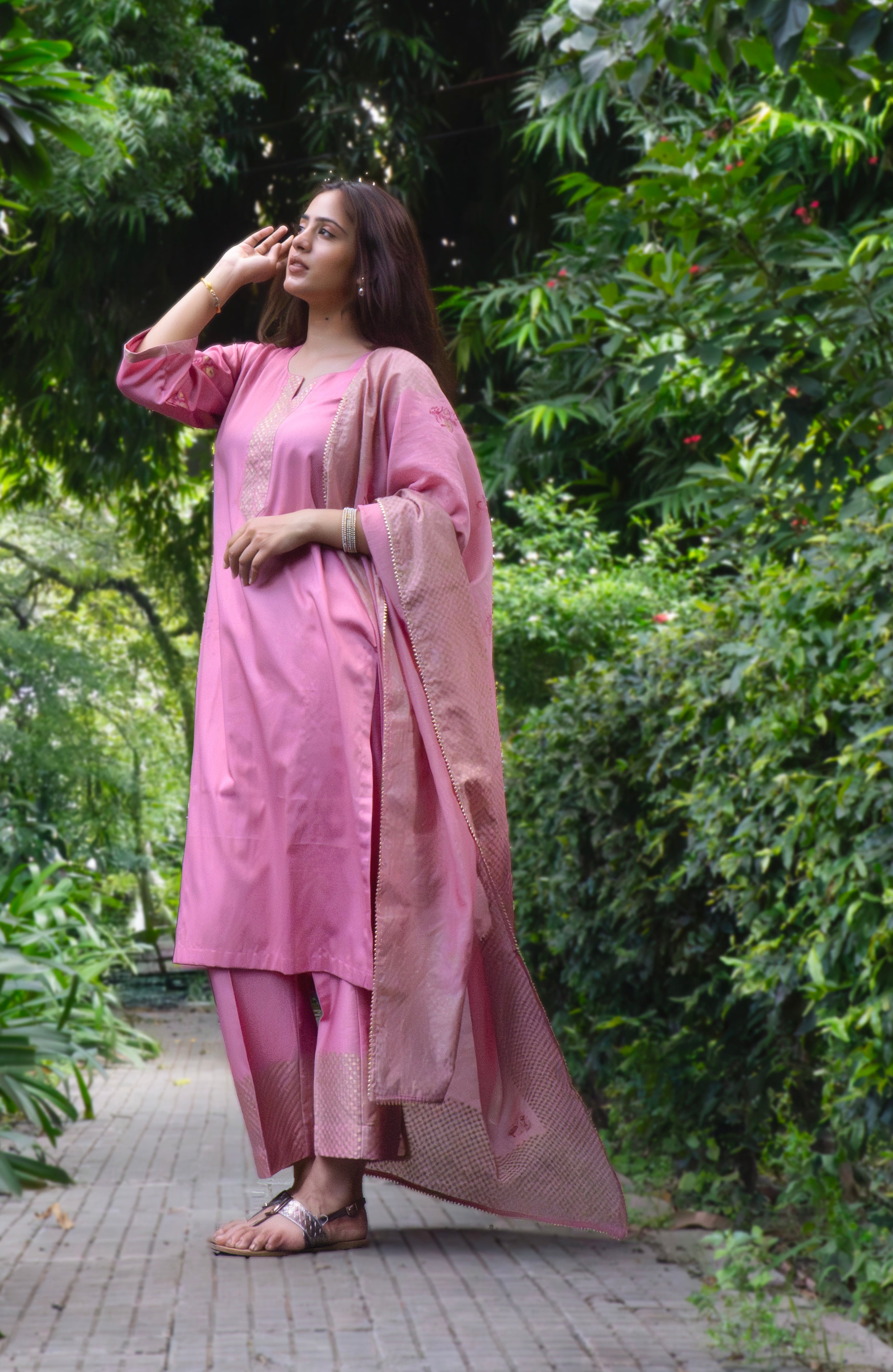 Off white handloom chanderi kurta set with embroidered chanderi dupatta