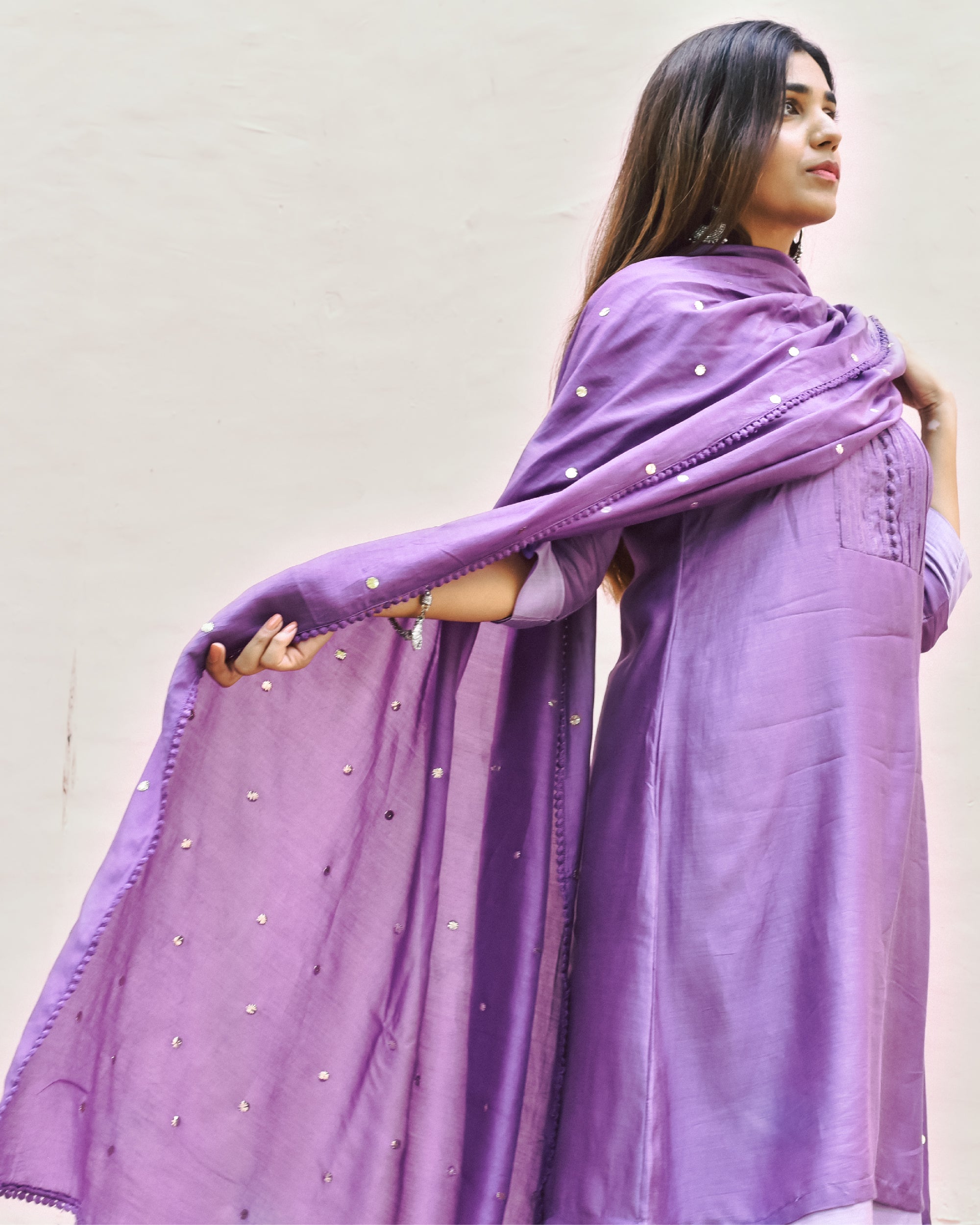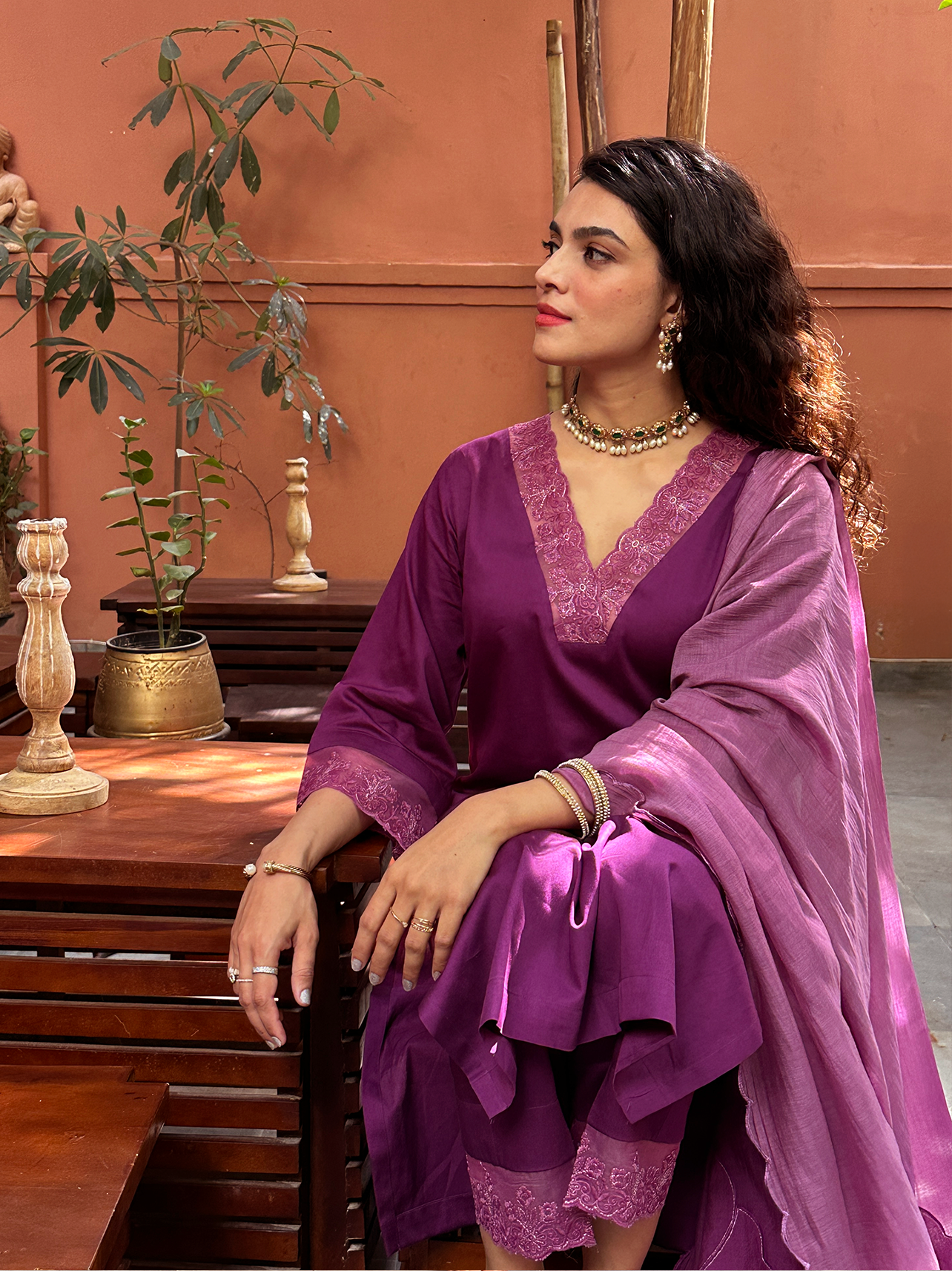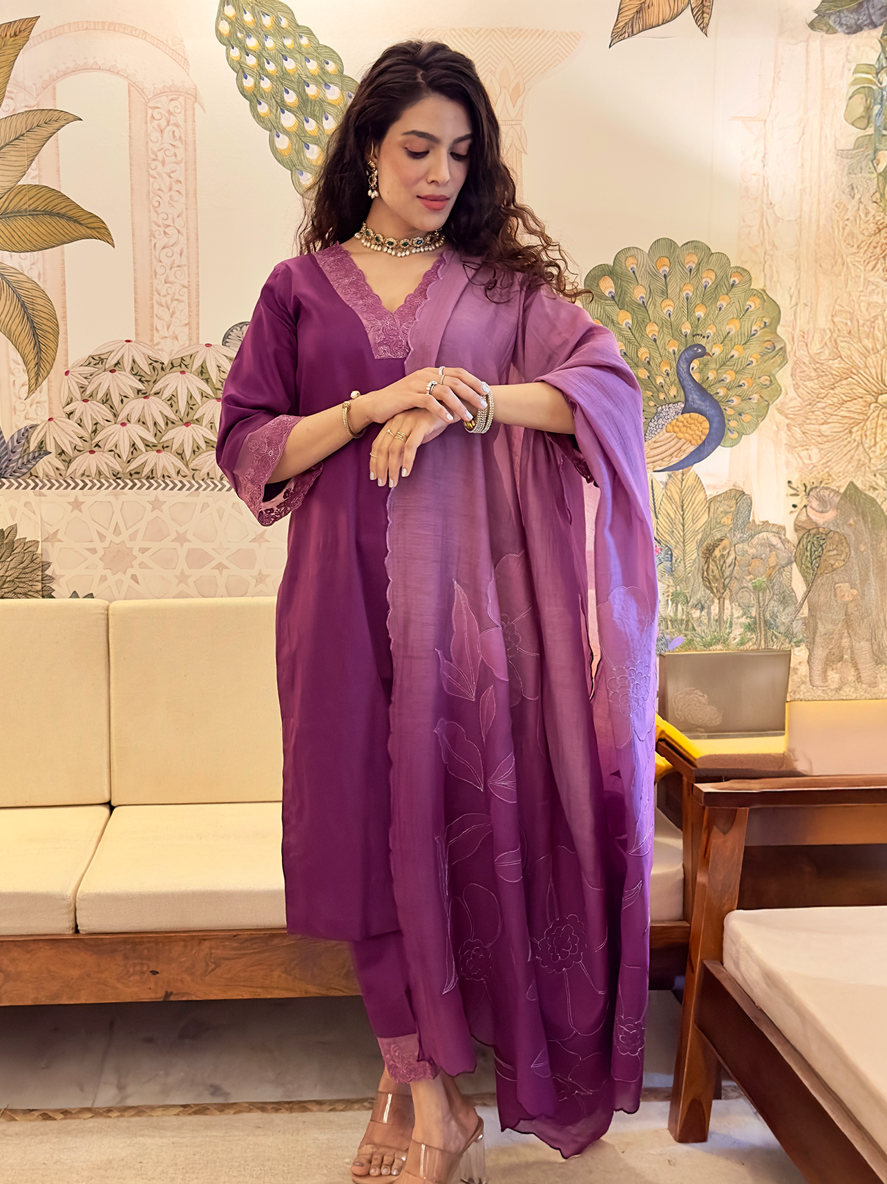 Mulberry Dual-Tone Suit with Intricate Appliqué Work