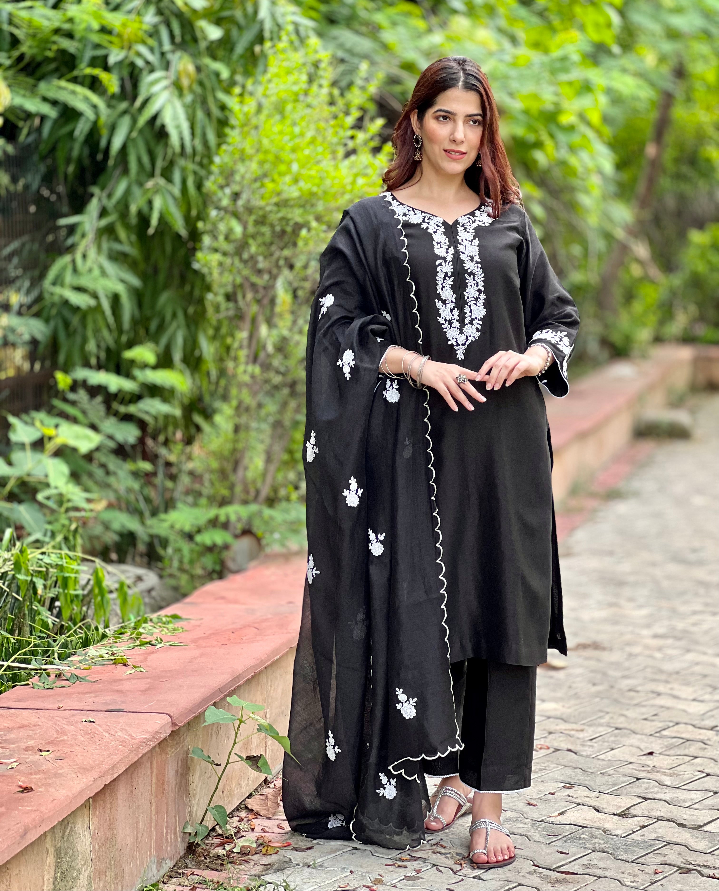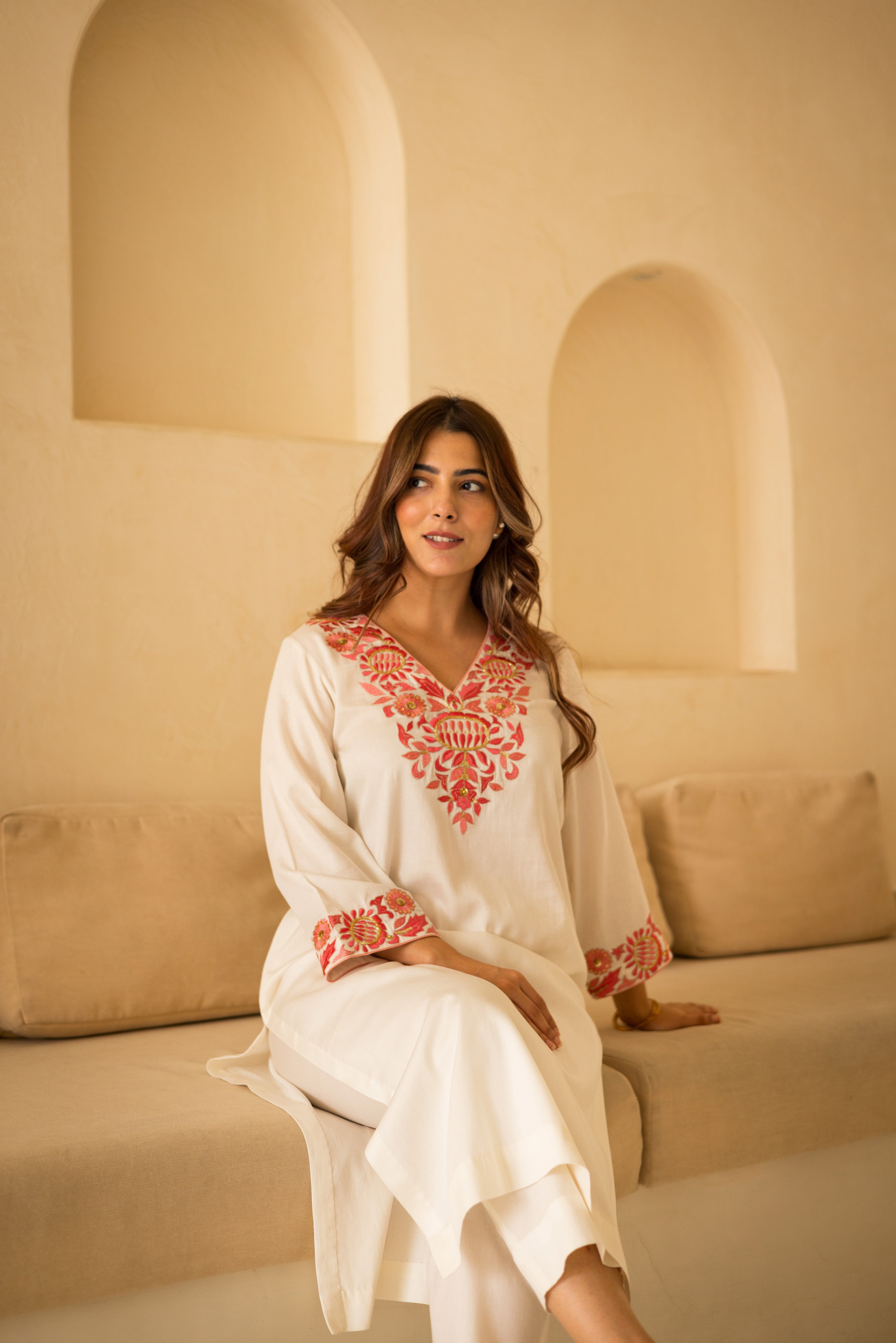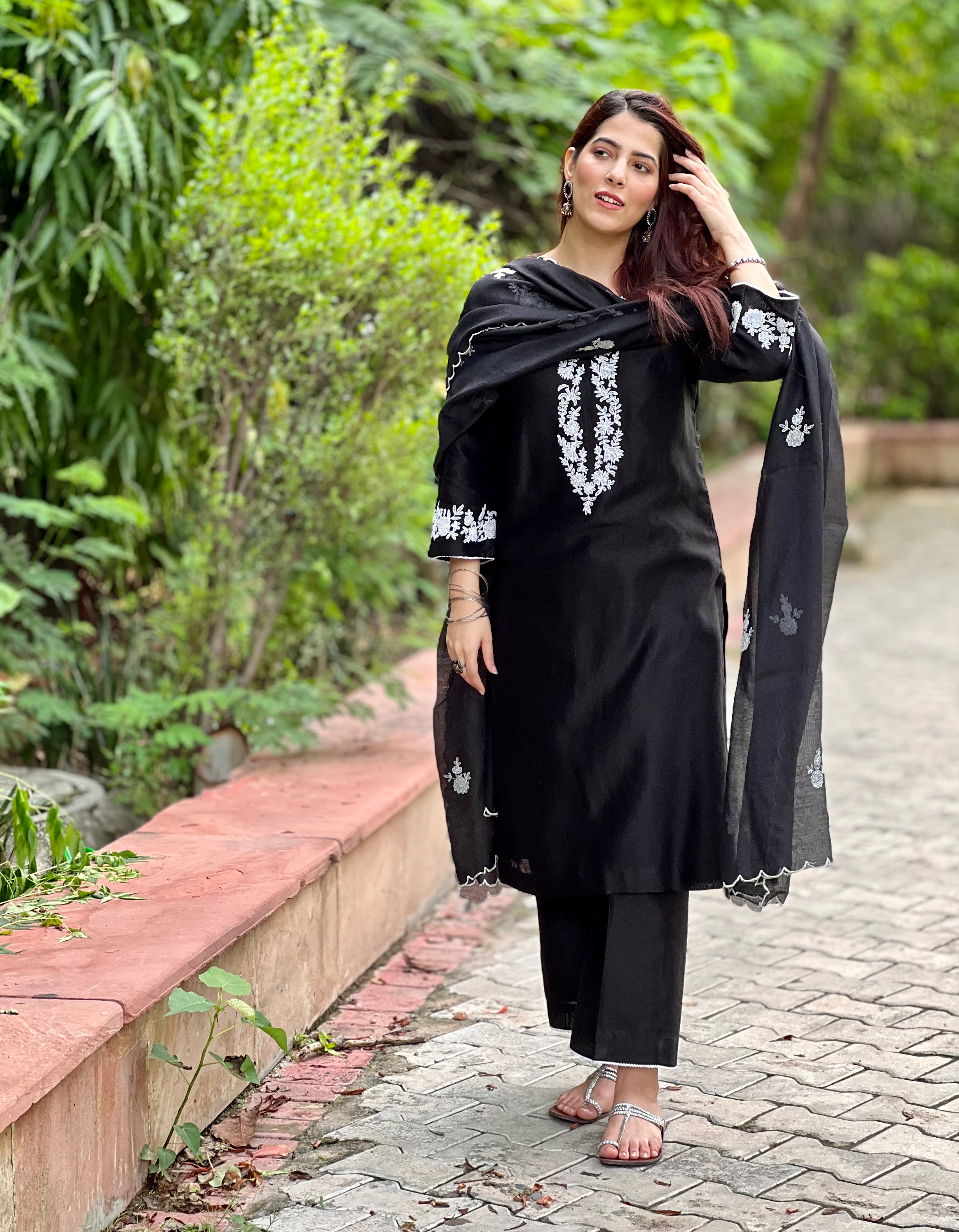 Off white handloom chanderi kurta set with embroidered chanderi dupatta