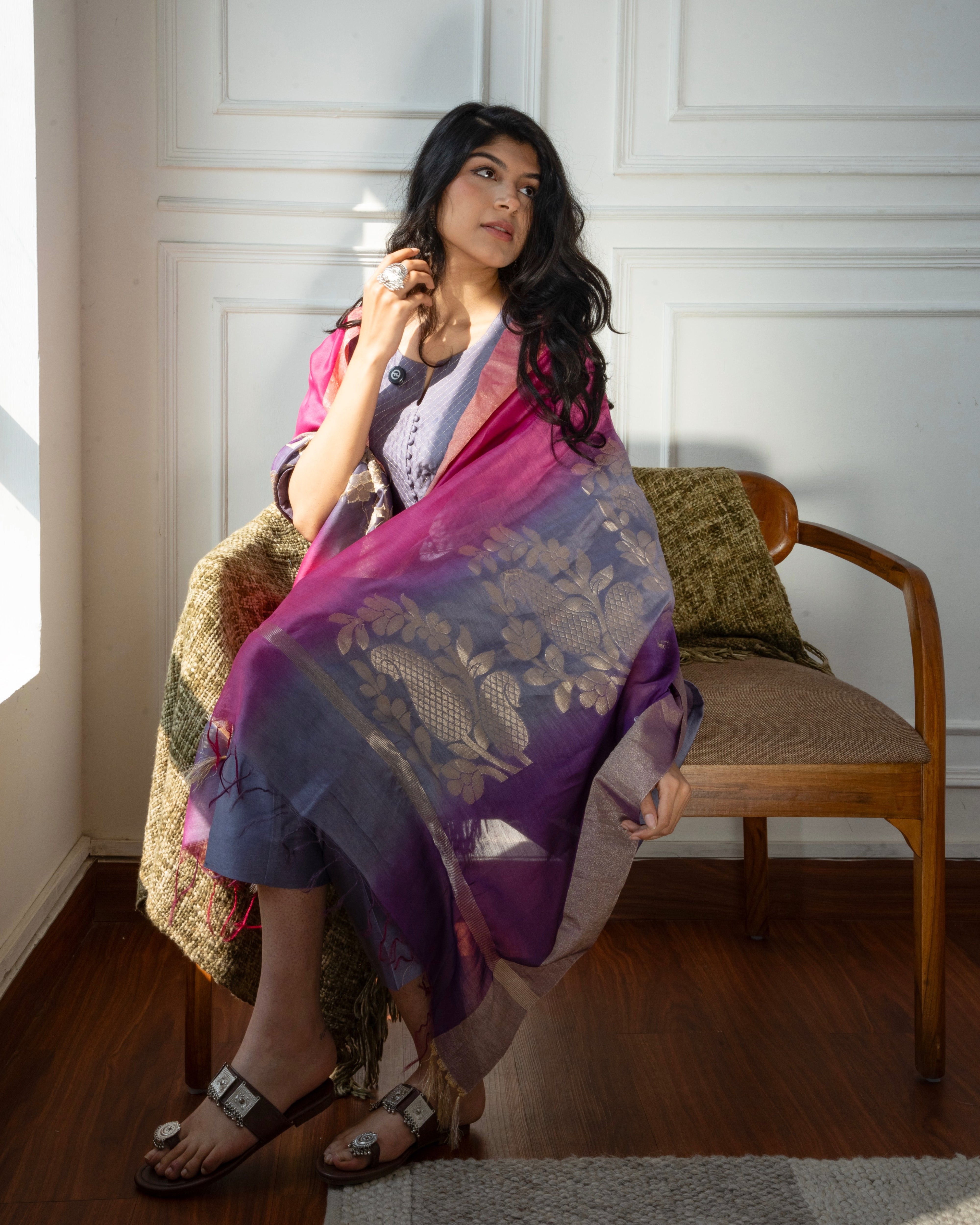 Lilac Bloom – Cotton Slub Set with Multicolour Chanderi Dupatta