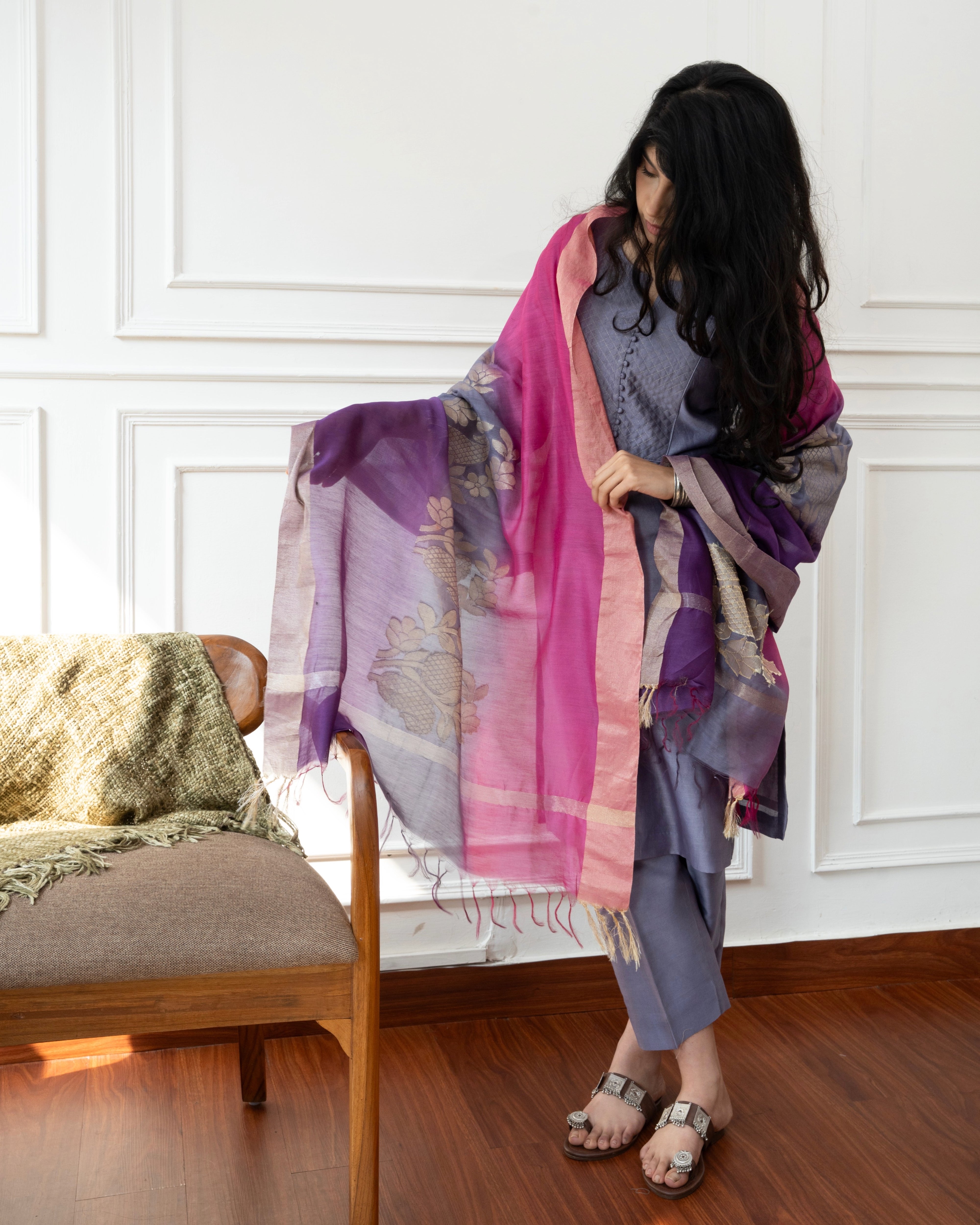 Noir Grace – Cotton Slub Kurta Set with Chanderi Dupatta