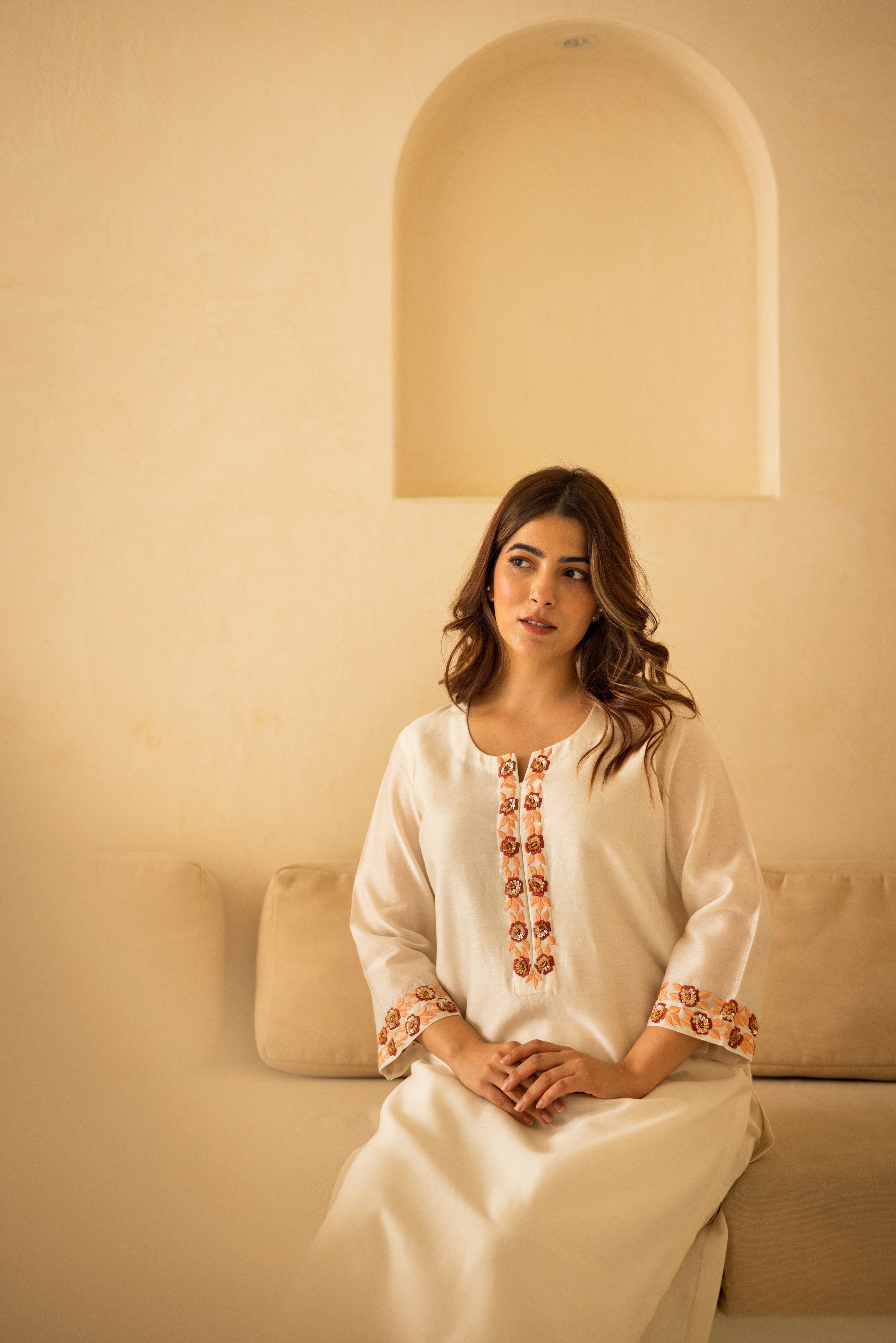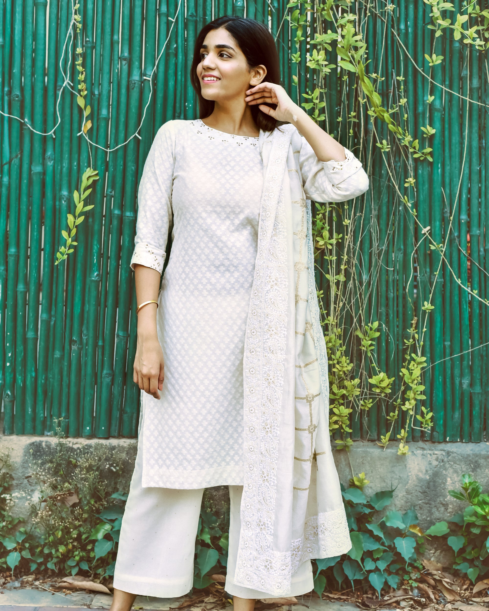 Offwhite embroidered kurta set
