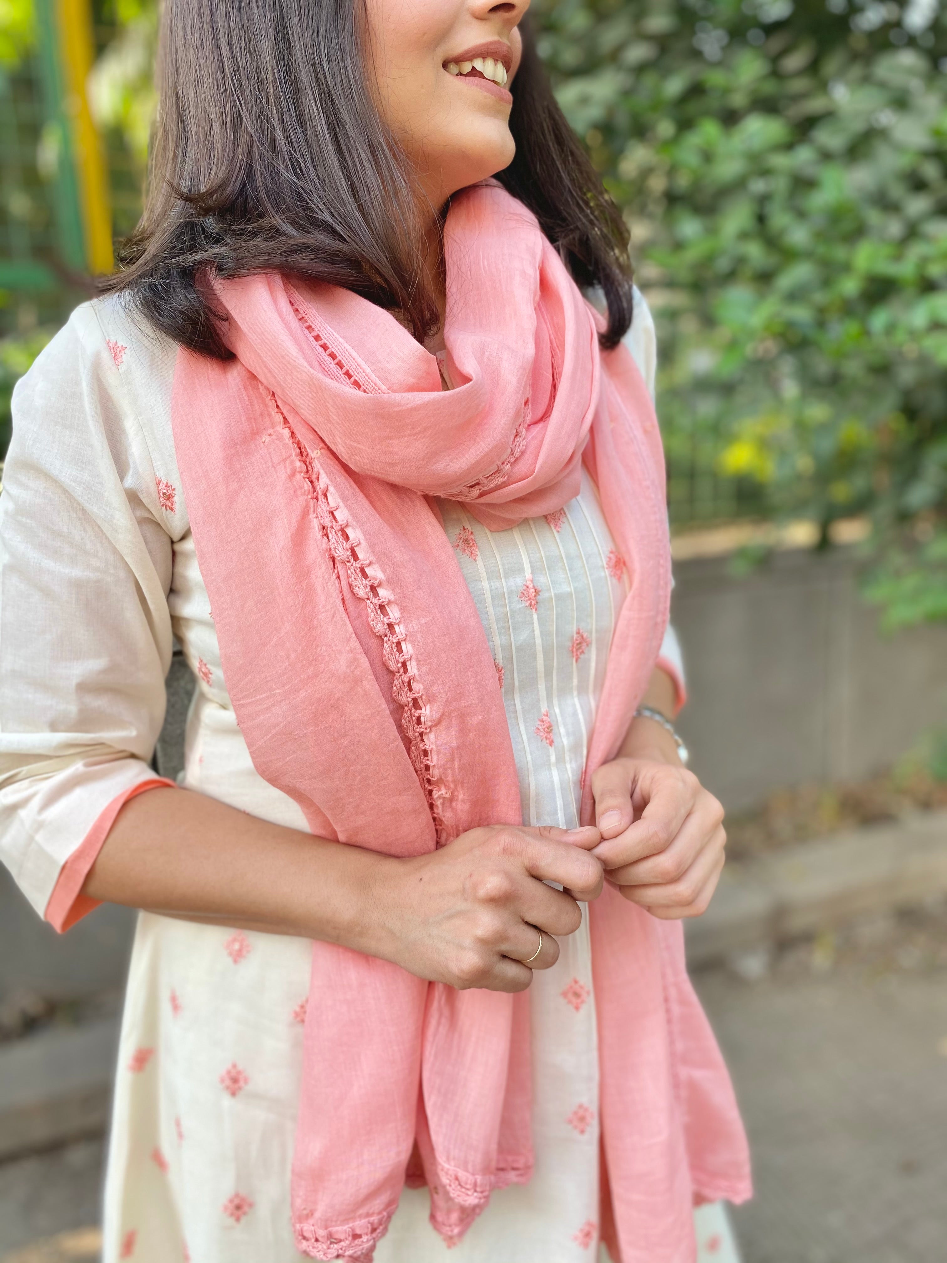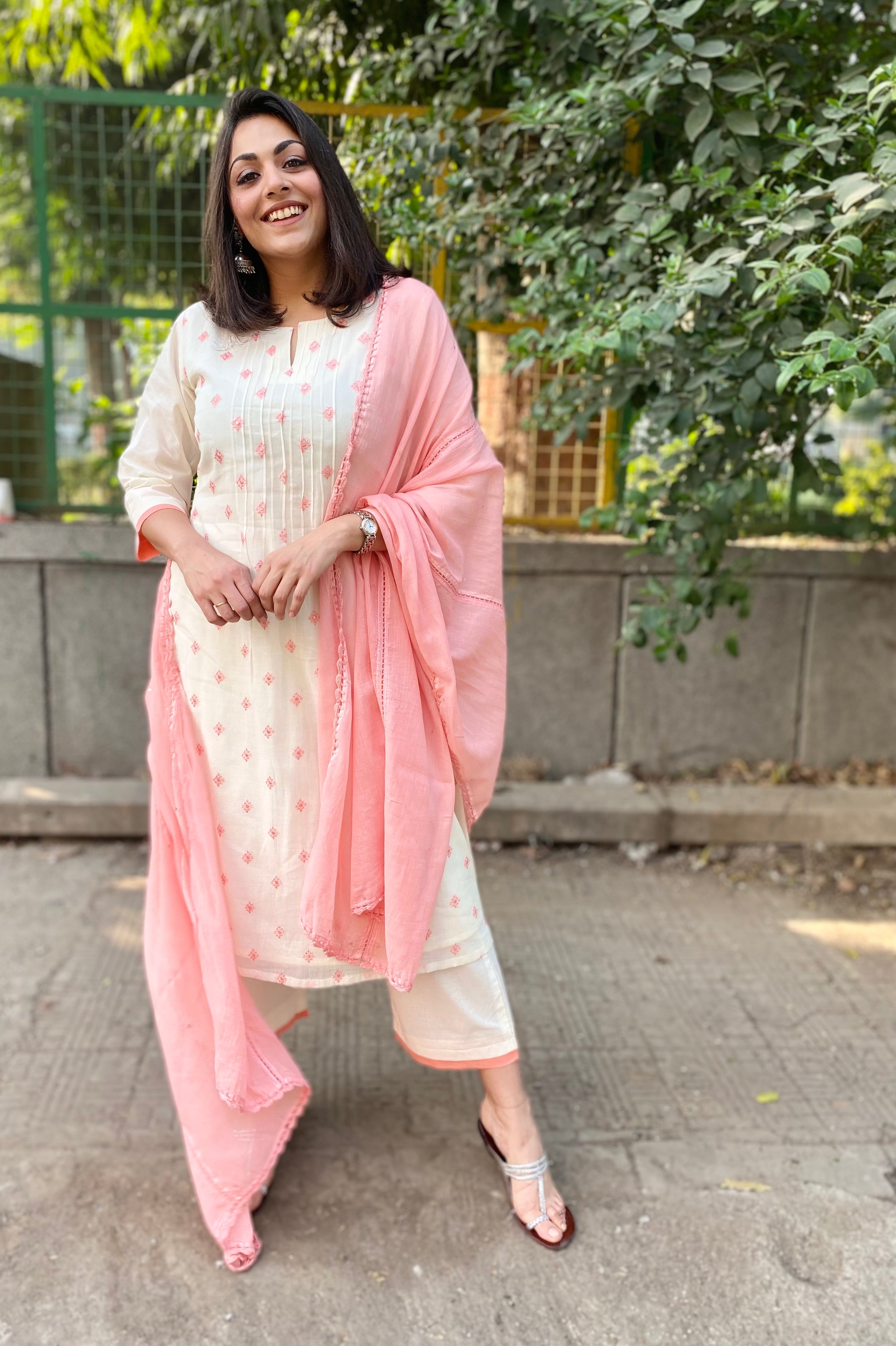 Offwhite and peach mul set